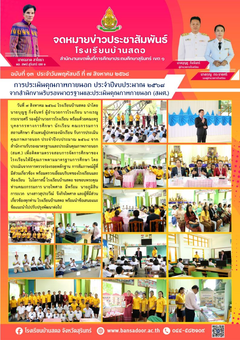 การประเมินคุณภาพภายนอก ประจำปีงบประมาณ ๒๕๖๘ จากสำนักงานรับรองมาตรฐานและประเมินคุณภาพภายนอก (สมศ.)